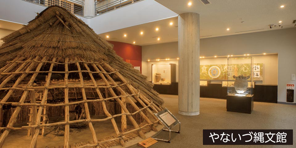 柳津町石生前遺跡などで発掘された土器・石器・土偶や復元住居などが展示されています。
